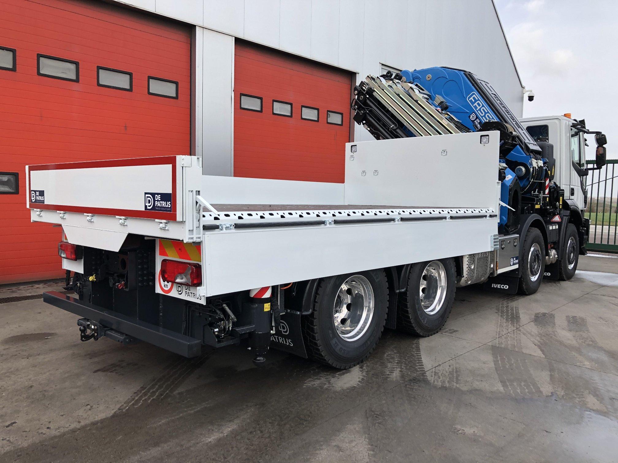 Une caisse doit être bien plus qu’une simple plateforme. Chez De Patrijs, nous construisons des caisses parfaitement adaptées à votre activité. Chaque caisse est conçue sur mesure : portes en aluminium, plancher en bois ou en acier, et de nombreuses options pour l’arrimage de la charge. Tout est pensé pour offrir confort d’utilisation, sécurité et durabilité. Nous combinons souvent la structure avec une grue FASSI, pour une solution complète et multifonctionnelle. Que vous transportiez des matériaux de construction, chargiez des machines ou travailliez dans la logistique — nous réalisons une caisse solide, intelligente et parfaitement adaptée à votre pratique quotidienne.